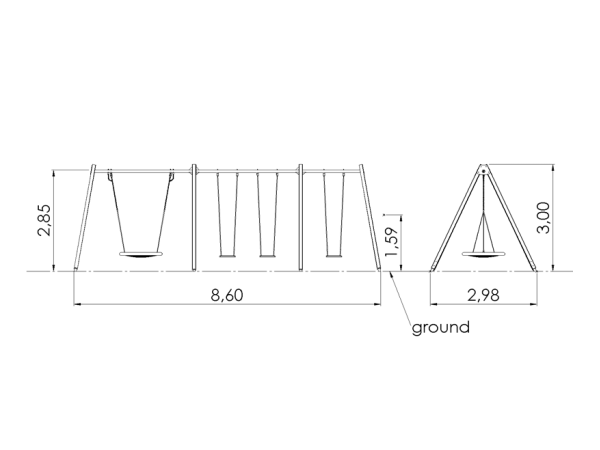 Keinuteline 2+2+1, korkea