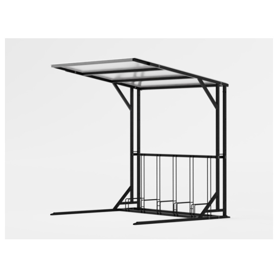 CE-merkitty kotimainen L-mallin polkupyöräkatos on edullinen ja tyylikäs valinta säilyttää polkupyöriä.