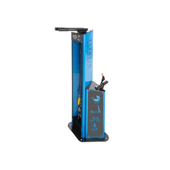 Kätevä pyörähuoltopiste sisältää tärkeimmät työkalut nopealle perushuollolle. Telineen työkaluilla voit säätää satulaasi, pumpata ja vaihtaa renkaat, säätää vaihteita, kiristää ruuveja, jne...